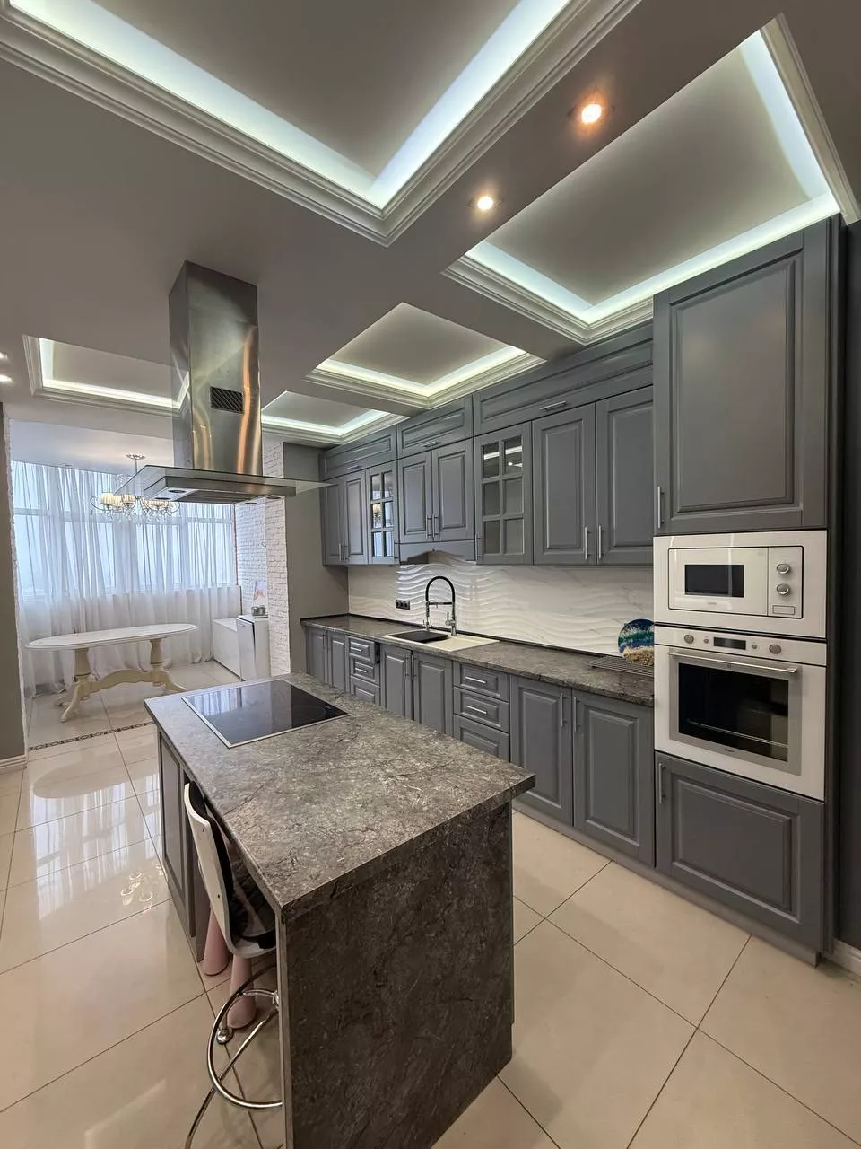 - кухню, интегрированную с обеденной зоной, откуда открывается великолепный вид на набережную реки Кальмиус.