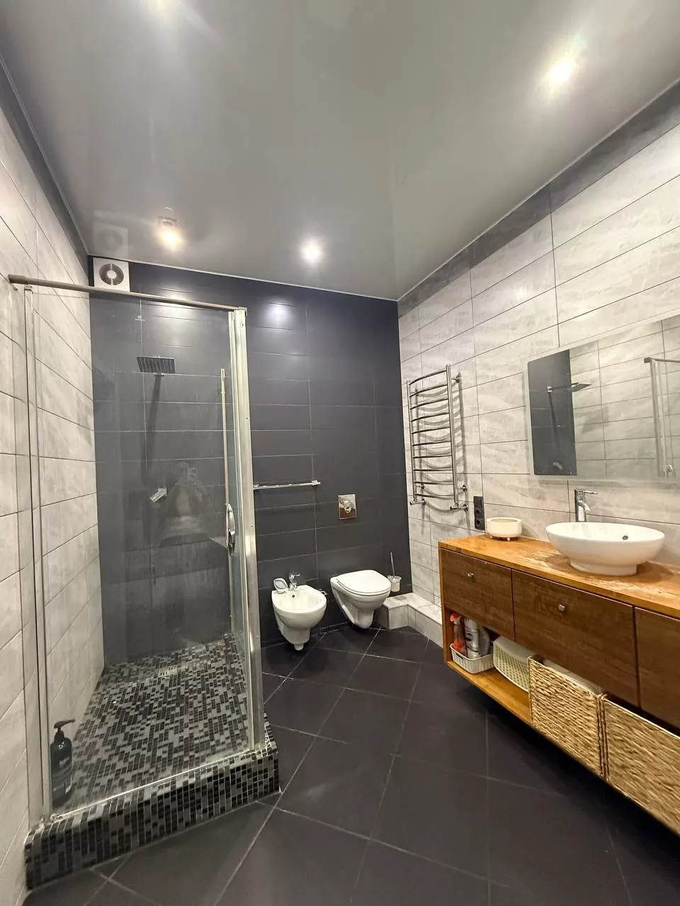 * Квартира полностью укомплектована современной техникой: посудомоечная машина, холодильник, стиральная машина, бойлер, кондиционеры в каждой комнате, а также подогрев пола и телевизоры. Предусмотрена организация высокоскоростного интернета.