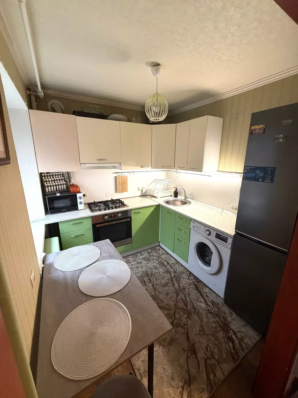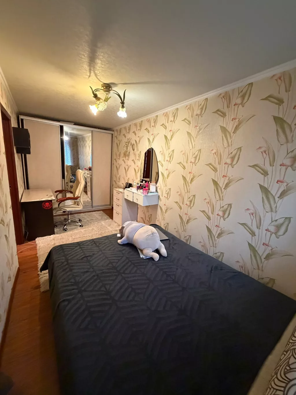 2/5. Общая площадь квартиры 44 м². В квартире остается вся мебель и бытовая техника (новый холодильник и стиральная машина). Стоит накопительная система с хорошим насосом. В день воды бак набирается, напор достает до второго этажа. Газовая колонка, вода горячая круглосуточно. Рядом парк Кованых фигур. Хорошая транспортная развязка.
